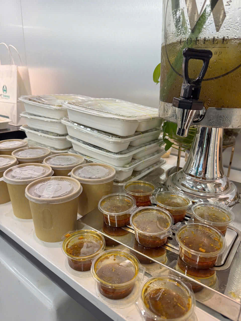 Mỗi phần ăn được đóng gói gọn gàng, canh để riêng và chuẩn bị chỉn chu để khách dễ dùng hơn khi nhận món.